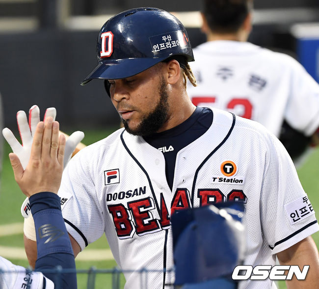 두산은 27일 서울 잠실구장에서 열린 2019 KBO리그 SK와의 홈 경기에서 4-2로 승리했다. 김재환이 부상으로 엔트리에서 말소, 이날 4번타자로 출장한 페르난데스는 2루타, 솔로 홈런을 터뜨렸다. 4타수 2안타. 타격 1위를 질주했다.