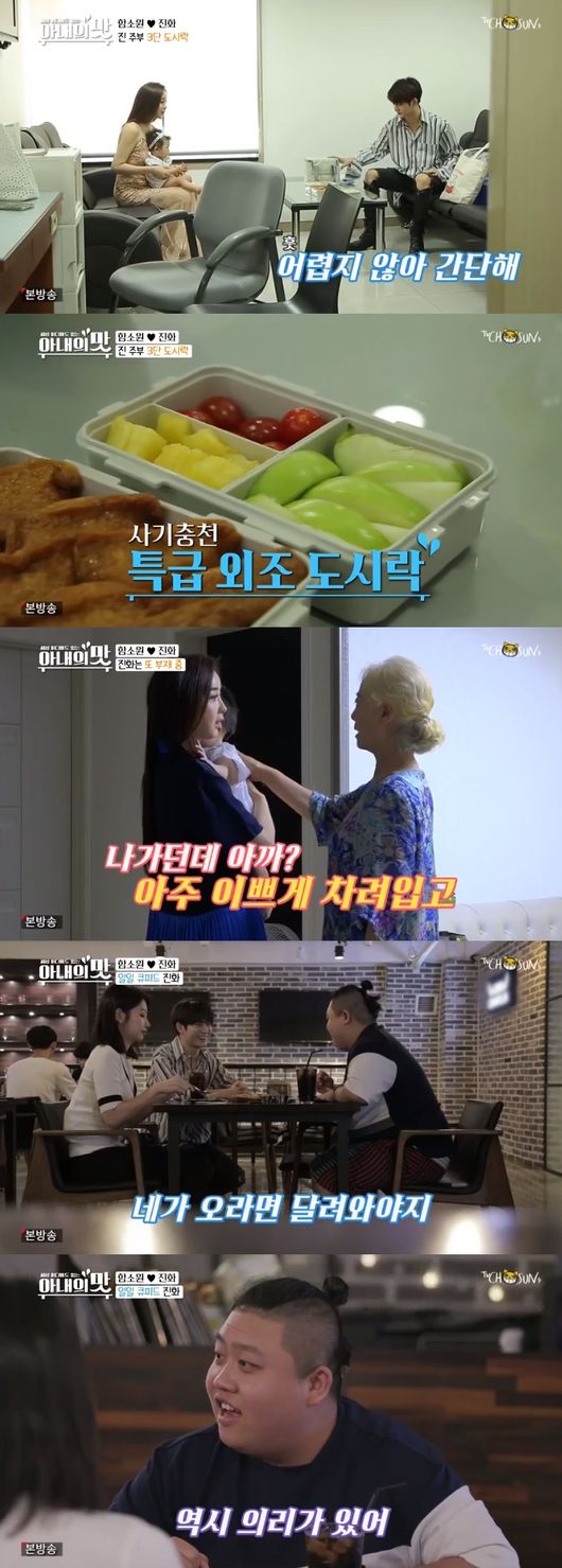 이후 진화는 밤늦게 걸려온 전화를 밖에 나가 받았고 함소원은 뭔가 비밀이 있는 거 같다고 말했다. 이에 진화는 "그런 거 아니다. 애기 깰까봐 그런 거다"라고 말했다. 다음날 함소원이 홈쇼핑 출연을 앞두고 있었고 진화는 혜정과 함께 나타났다. 이에 놀란 함소원은 "여긴 어쩐 일이냐. 어떻게 온 거냐."라고 물었고 진화는 "밥을 싸왔다"며 직접 만든 도시락을 꺼냈다. 이에 함소원은 "감동이다"라고 말했다.