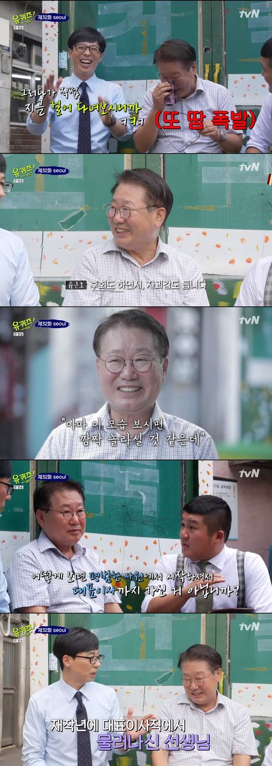 이에 유재석은 "대표이사로 재직할 때 후회된 부분은 없나"고 질문했다. 류근오씨는 "왜 그렇게 아등바등 맵게 했을까 라는 후회가 된다"고 말했다. 류근오씨는 "다시 그 자리로 돌아간다면 좀 더 폭 넓고 유연하게 가지 않았을까라는 후회를 한다"고 말했다.