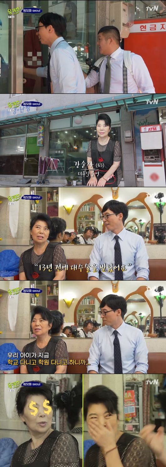 원장님은 "13년 전에 큰 수술을 받았다. 신장을 하나 적출했다"고 말했다. 이에 유재석은 "휴가는 다녀 오셨냐"고 물었다. 이에 원장님은 "백 만원을 주면 가겠다"라고 말해 주위를 웃음바다로 만들었다. 미용실 원장님은 '유퀴즈'의 열렬한 팬이었다.