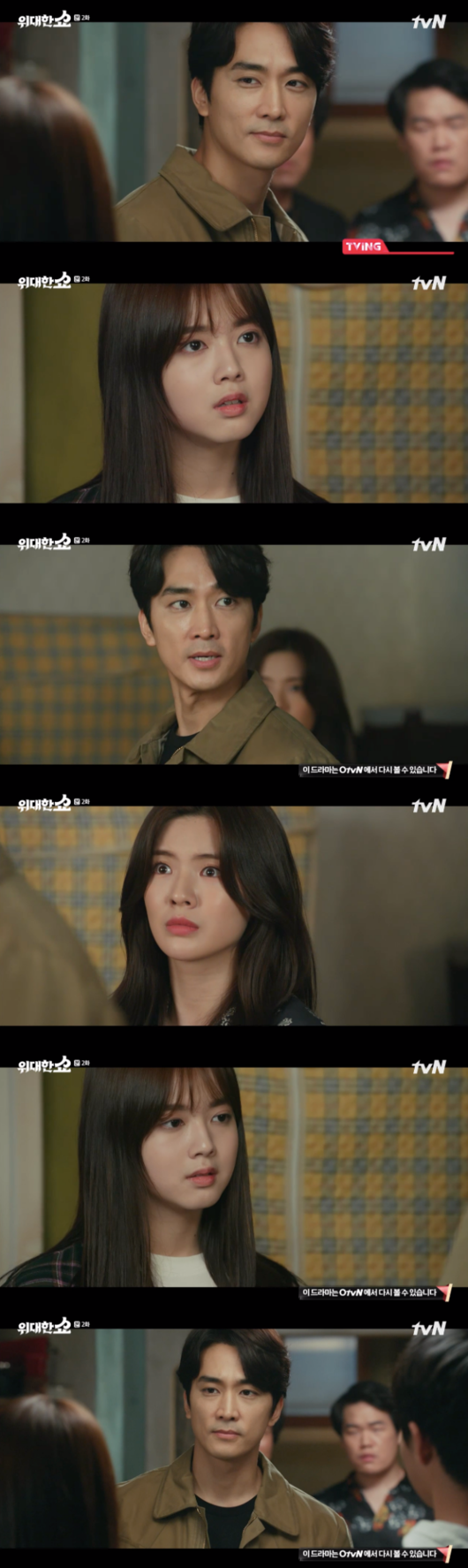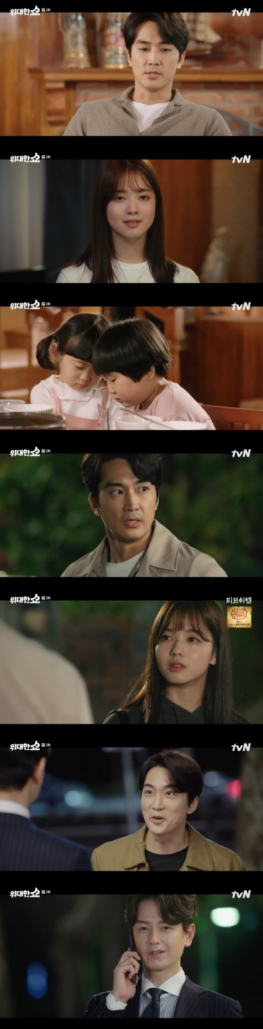 지난 27일 오후 방송된 케이블채널 tvN 월화드라마 '위대한 쇼'(극본 설준석, 연출 신용휘 김정욱) 2회에서는 위대한(송승헌 분)이 한다정(노정의 분) 사남매의 아빠가 되겠다고 선언하는 내용이 그려졌다. 위대한은 빚 독촉으로 인해 건달들에게 시달리는 사남매를 구해주며 “오늘부터 아빠”라고 선언했다.
