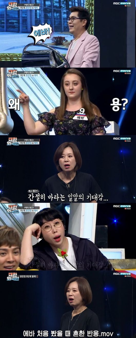 반전 승부사가 된 권진영이 9단계까지 진출했다. 우승의 길로 가는 험난한 승부가 남은 가운데 문제가 나오기 전에 에바가 사진만 보며 답을 외쳤고, '도라산역'이라 말했다. 모두 의문을 가질 정도였다. 급기야 정답을 맞혀내 모두를 소름돋게 했다. 한 글자도 나오기 전에 맞힌 에바에게 비결을 묻자 에바는 "공교롭게도 어제 판문점에 다녀왔다"면서 "도라산 역 전망대에서 사진도 찍었다, 나도 소름 돋았다, 행운이고 기적"이라고 말해 모두를 소름돋게 했다. 권진영은 "오히려 외국인에게 배운다"며 놀라워했다.