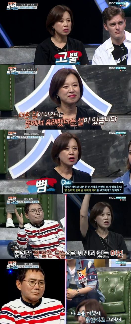 이어 단시간에 2단계까지 성공, 외국인들은 "남편 분도 다 듣기 전에 맞혔는데 똑같다"며 놀라워했다. 데칼코마니처럼 똑같은 모습으로 정답을 맞힌 박미선은 "부부가 닮는가보다, 우리 둘 다 성격이 급하다"면서 "나랑 닮았다니 소름끼친다"고 말해 웃음을 안겼다. MC 김용만은 "똑같다면 우승까지 가자, 최초 부부우승자가 탄생할지 기대된다"고 말했다.