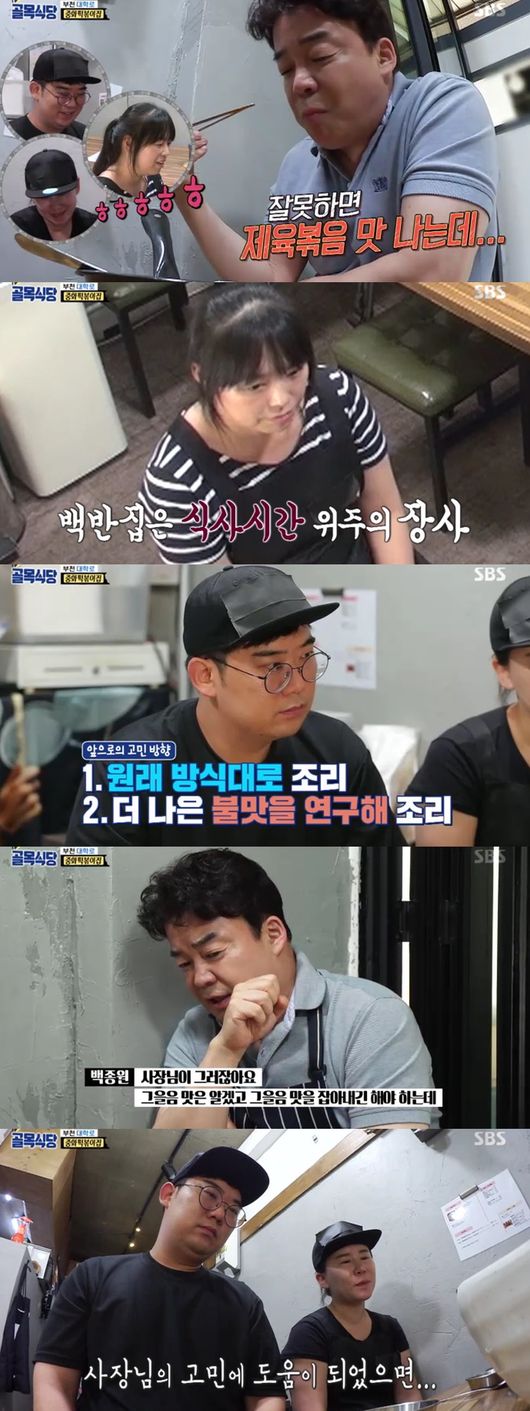 백종원은 "참 이렇게 하기도 힘들다"고 말하며 싱겁다고 했다. 그러면서 "사장님 참 용감하다, 음식 할 줄 모르면서 어떻게 식당하겠다고 해"라면서 "母가 하지 말라고 한 말도 선견지명이 있었다, 母말이 지금쯤 이해가 된다, 안 되는 사람이 있다"고 말해 웃음을 안겼다.