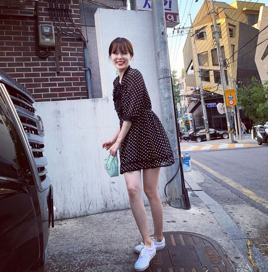 공개된 사진 속 현아는 긴 머리를 낮게 돌려 묶고, 검은색 도트 패턴의 원피스를 입고 있다. 그야말로 레트로 패션의 정석이다.