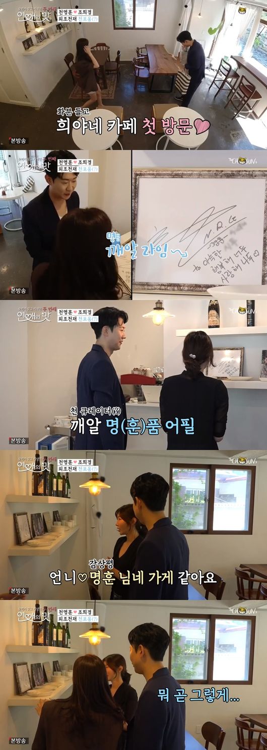 이날 천명훈은 화분을 들고 조희경의 카페를 찾았다. 카페에는 조희경의 친언니가 있었다. 천명훈은 "SNS에서 언니를 봤다"며 인사했다. 이어 천명훈은 액자를 준비했다며 손수 준비한 싸인 액자를 꺼내 웃음을 자아냈다.