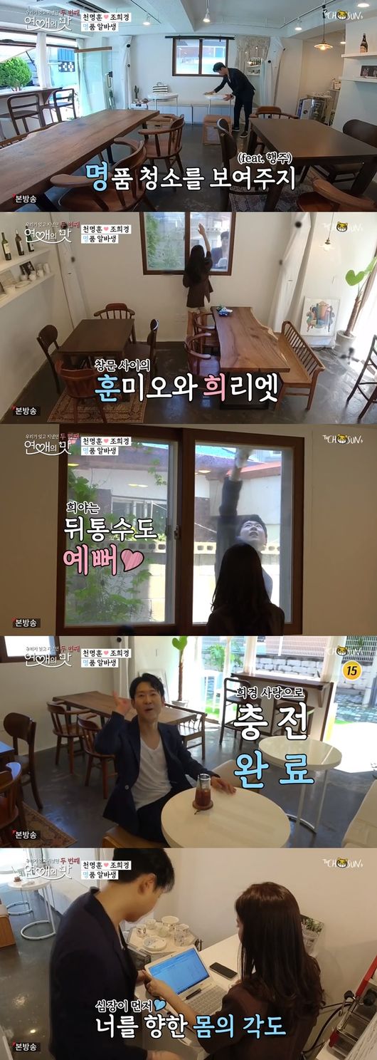 29일에 방송된 TV조선 '우리가 잊고 지냈던 두 번째 연애의 맛'에서는 천명훈이 조희경의 카페를 찾아가 일일 알바생으로 나서는 모습이 그려졌다.