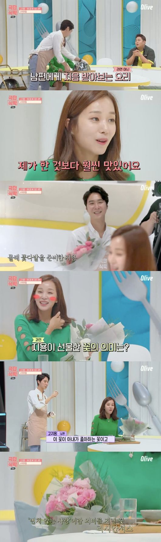 리시안셔스 꽃다발이었다. 리시안셔스는 '변치 않는 사랑'이라는 꽃말을 가지고 있다고. 고지용은 "아내가 좋아하는 꽃이다"라고 말했고, 허양임은 감동의 미소를 숨기지 못했다.