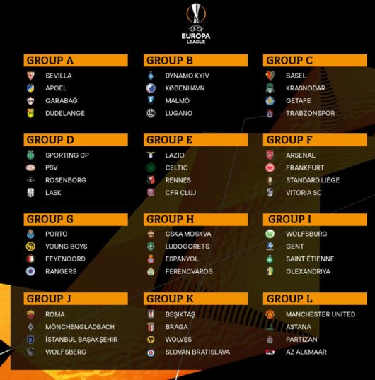 48강 조별리그 팀들의 상대가 모두 확정됐다. 맨체스터 유나이티드는 L조에서 아스타나(카자흐스탄), 파르티잔(세르비아) 등과 맞붙는다.