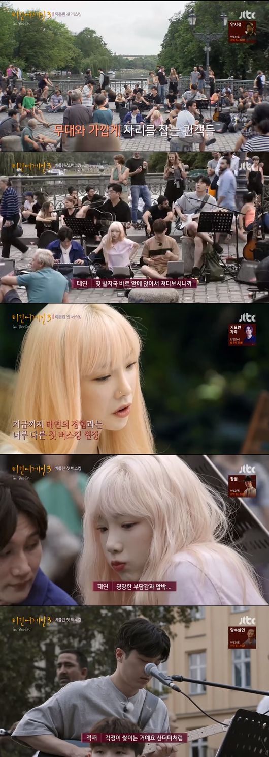 다음은 태연의 첫 버스킹 무대였다. 태연은 제작진과의 인터뷰를 통해 "너무 부담스러웠다"며 "내가 다시 보기로 봤던 버스킹 무대와 달랐다. 사람들과 너무 가까웠다"고 말했다. 폴킴은 태연을 슈퍼스타라고 소개하며 호응을 유도했다. 태연은 '11:11'을 선곡했다. 태연의 노래를 들은 시민들은 박수를 치며 좋아했다.