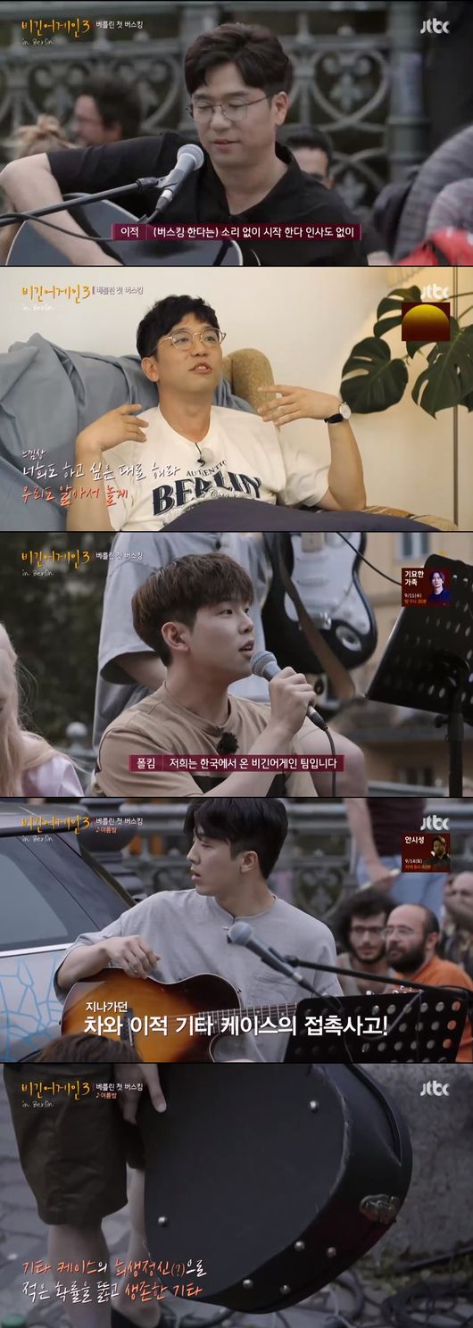 그때 다리를 건너던 차가 이적의 기타 케이스를 밟았다. 폴킴은 "그때 심장이 떨어지는 것 같았다. 기타에 문제가 생겼을까봐 너무 걱정됐다"고 말했다. 태연은 "분위기가 좋았다. 나도 노래를 들으며 힐링하고 있었다"고 말했다. 이 모습을 본 베를린 시민 역시 안타까워했다.