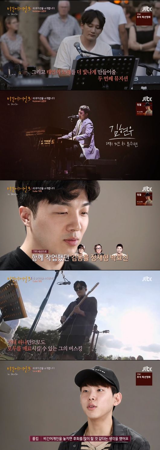 30일에 방송된 JTBC '비긴어게인3'에서는 새로운 버스킹 멤버들로 태연, 이적, 적재, 폴킴, 딕펑스 김현우가 등장했다.