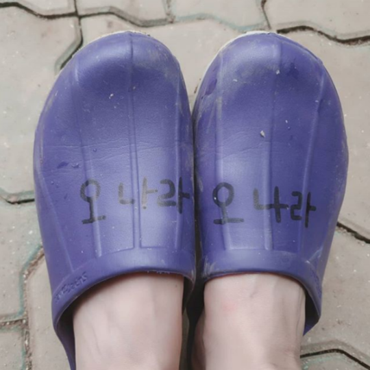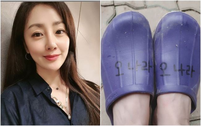공개된 사진에는 오나라라는 이름이 적힌 보라색 슬리퍼가 담겨 있다. "해피바이러스 깻잎 조림 만들어볼거다", "슬리퍼도 명품으로 만드는 오나라", "멸치깻잎조림 보는데 군침이.." 등의 반응이 이어졌다.