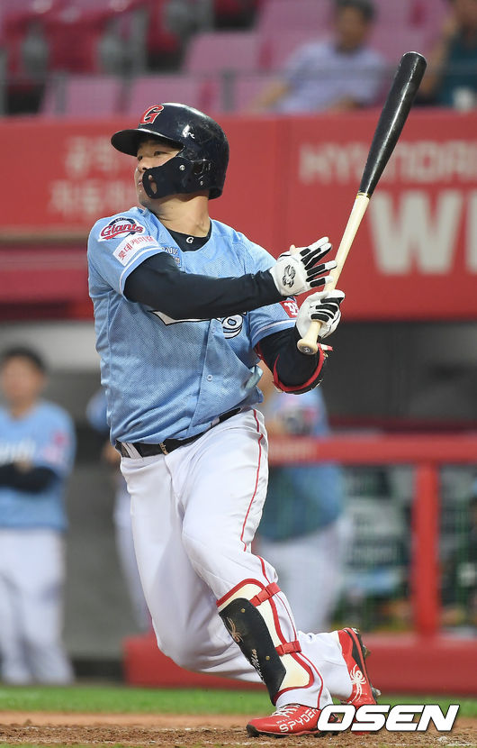 정타로 맞은 타구는 좌중간 담장을 넘어가는 115m짜리 홈런이 되었다. KIA 좌익수 최형우가 쫓아갔으나 넘어가는 타구를 바라보았다.