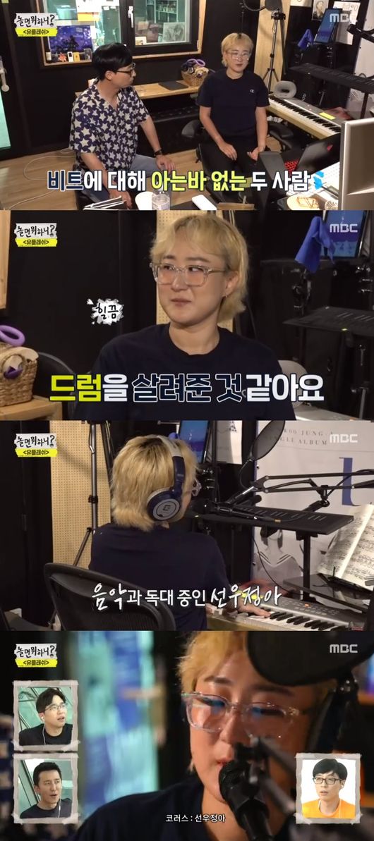 이어 선우정아는 "저는 주된 악기가 목소리다"라고 말했다. 이에 작업을 시작했다. 선우정아는 이적이 보낸 음원을 듣고 "이적의 기타가 드럼을 살려주신 거 같다 포크 모던락 같은 느낌"이라고 설명했다. 이에 유재석은 "마이클 런 스 투락 음악을 말하는 거냐"며 좋아했다. 하지만 선우정아가 알지 못하자 금방 당황했다.