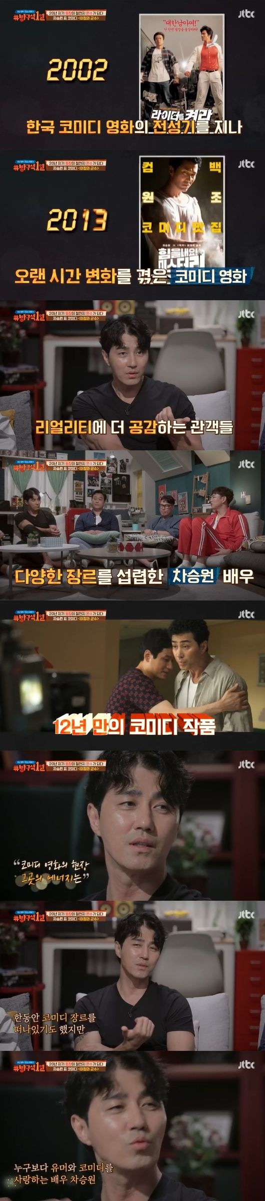 "이제 코미디 연기의 노하우가 있을 것 같다"는 말에 차승원은 "코미디가 쉬운 게 아니다. 정말 타이밍을 잘 맞춰야 한다. 조금만 안 맞으면 안 된다. 정극보다 더 진짜 같이 해야 웃기다. '코미디 연기를 어떻게 해요?'라고 하는데, 코미디 연기는 따로 없다. 그냥 연기이고, 상황이 웃길 뿐"이라고 했다.