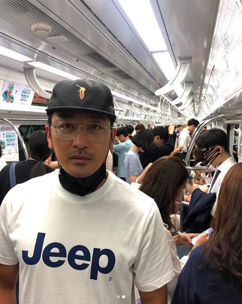 배우 하정우가 지하철 퇴근 인증샷을 공개했다.