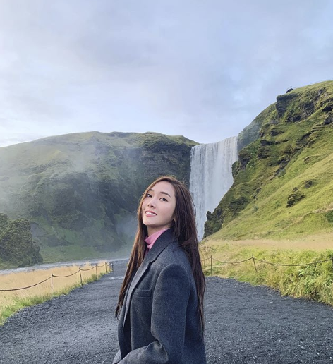 사진에서 제시카는 시원하게 쏟아지는 스코가폭포를 뒤로하고 카메라를 보며 활짝 웃고 있다. 소녀시대 시절 상큼한 매력은 없지만 물오른 영상미가 돋보인다. 재킷까지 걸쳐입고 계절을 앞서나간 분위기 여신이 여기 있다.