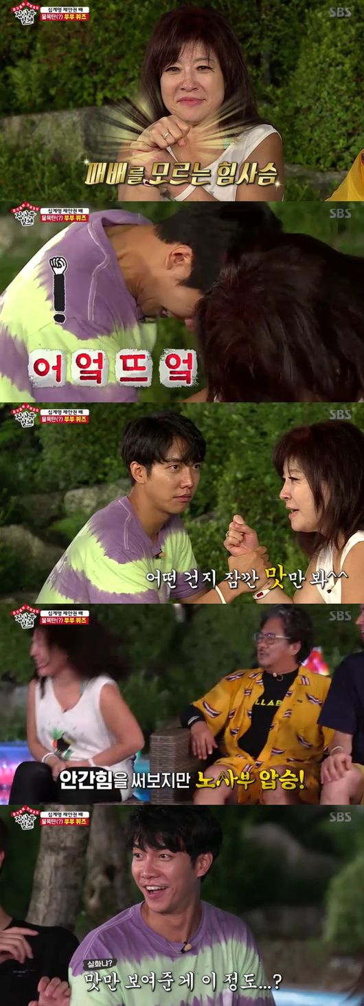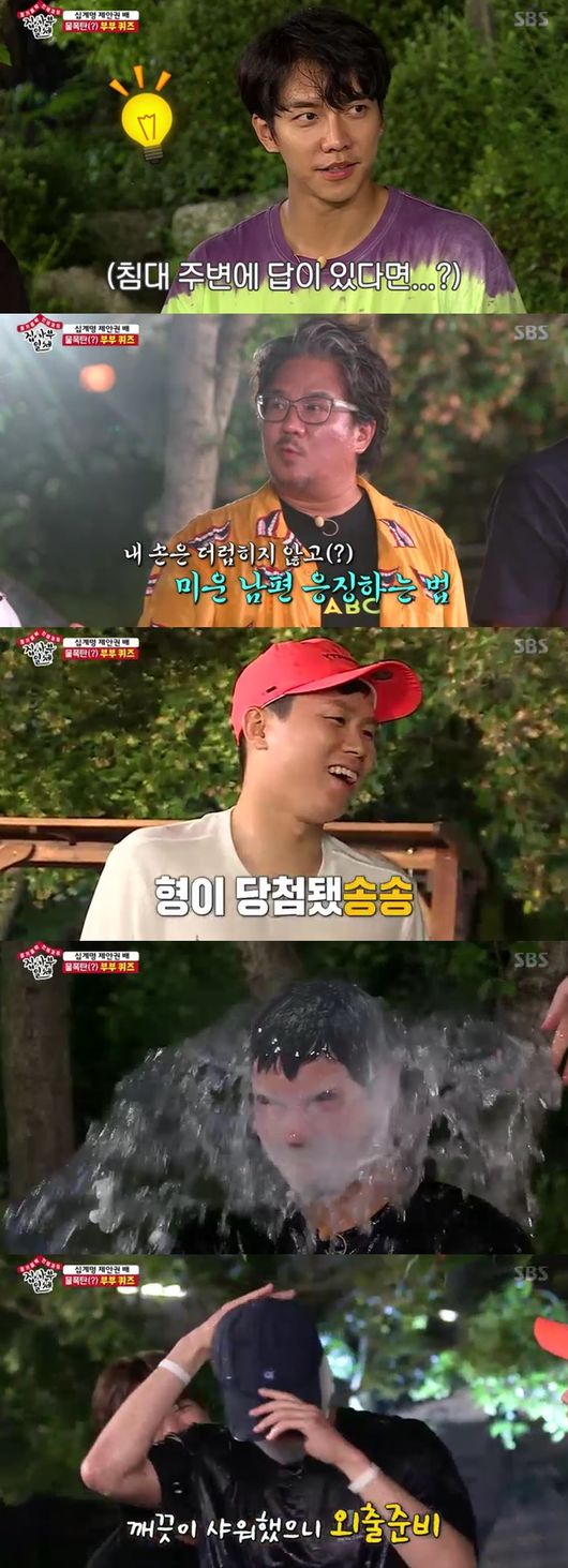 물 폭탄이 걸린 노사연, 이무송 부부의 부부퀴즈가 그려졌다. 노사연은 "남편이 미울 때 어느정도 밉냐고 했을까"라며 문제를 냈고, 이승기가 "액자가 떨어질 정도"라고 답하며 정답을 맞혔다. 노사연과 이무송은 짓궃게 장난치다가도 서로의 매무새를 만져주며 달달한 모습을 보였다.