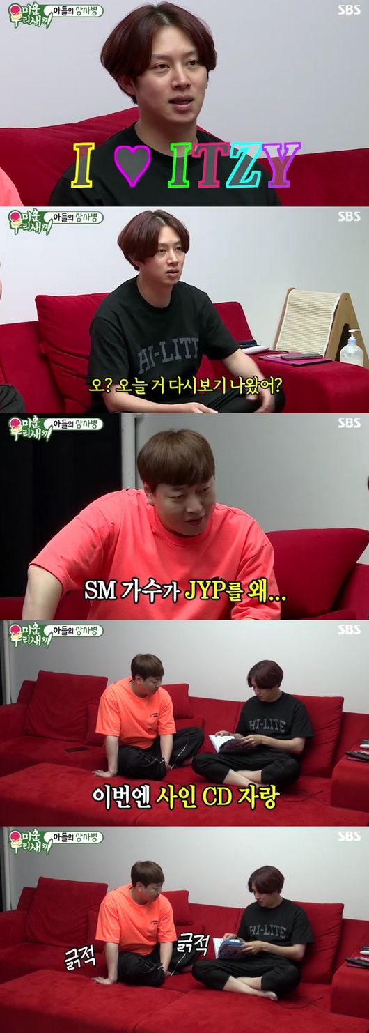 김희철은 갑자기 이진호에게 아이돌 ITZY 포토카드를 내밀면서 사인CD까지 자랑했다. 김희철은 "내가 쇼케이스 MC봐주고 받았다"면서 응원 플래카드도 꺼냈다. 김희철은 "너무 소중해, 넌 이런 행복한 게 없냐"면서 플래카드를 들고 ITZY의 컴백무대를 다시보기 해 폭소하게 했다. 그러면서 이진호에게 ITZY를 소개하면서 멤버들에 대해서도 브리핑해 놀라움을 안겼다. 이를 본 MC 서장훈은 "아이돌 최고 권위자, 우리나라에서 이 분야는 최고"라며 감탄했다.