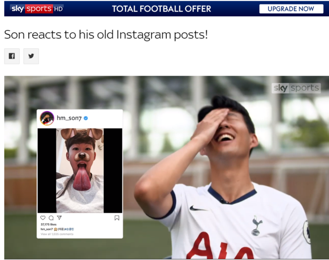 영국 '스카이스포츠'는 지난달 31일(한국시간) "손흥민과 함께 과거 자신이 올린 인스타그램 게시물을 보고 그가 어떤 반응을 보이는지 알아봤다"고 보도했다.