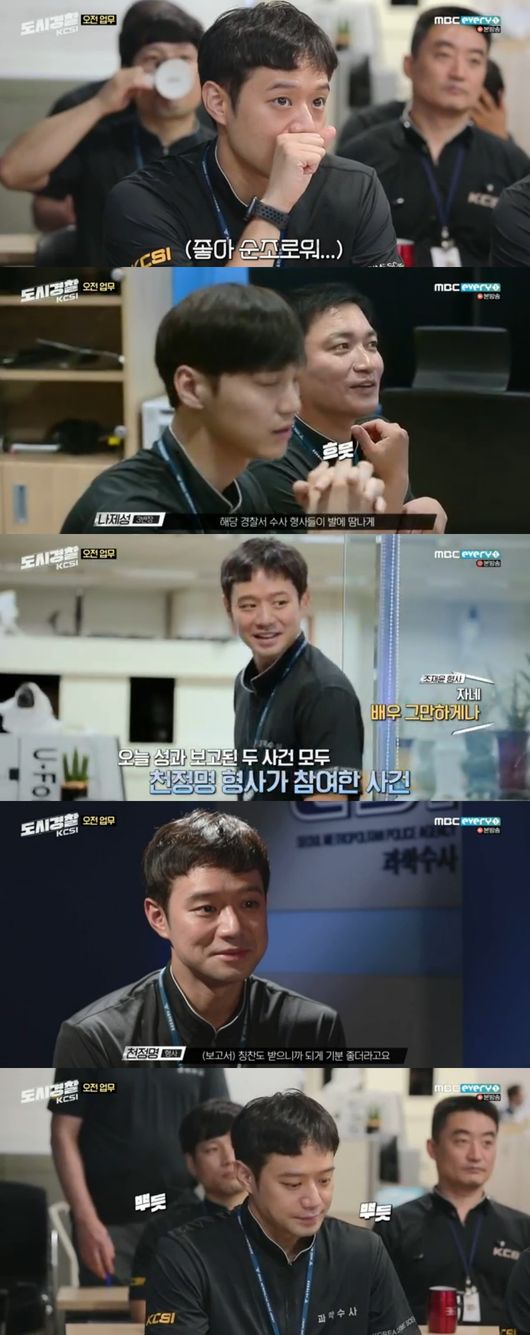 2일 방송된 MBC 에브리원 예능 '도시경찰 시즌2'에서 조재윤이 배우를 그만하라고 말할 정도로 천정명의 활약이 빛났다.