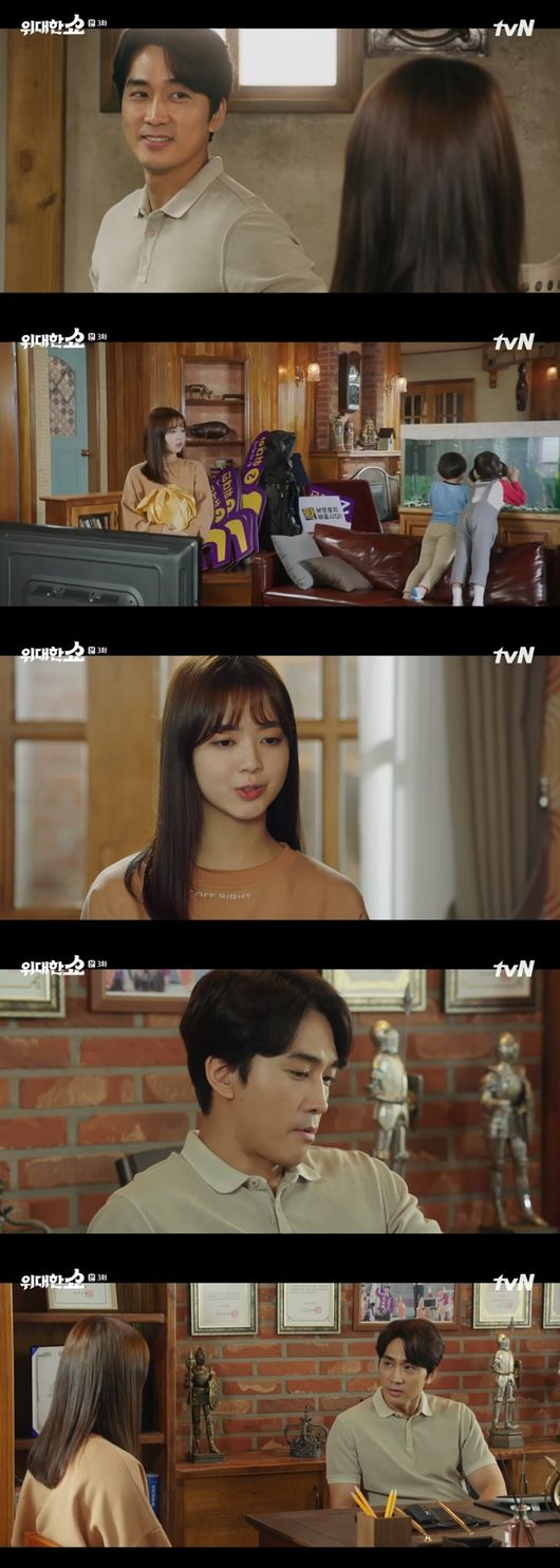 2일 방송된 tvN '위대한 쇼'에서는 한다정(노정의)와 한다정의 동생들이 위대한(송승헌)의 집에 들어오는 모습이 그려졌다.