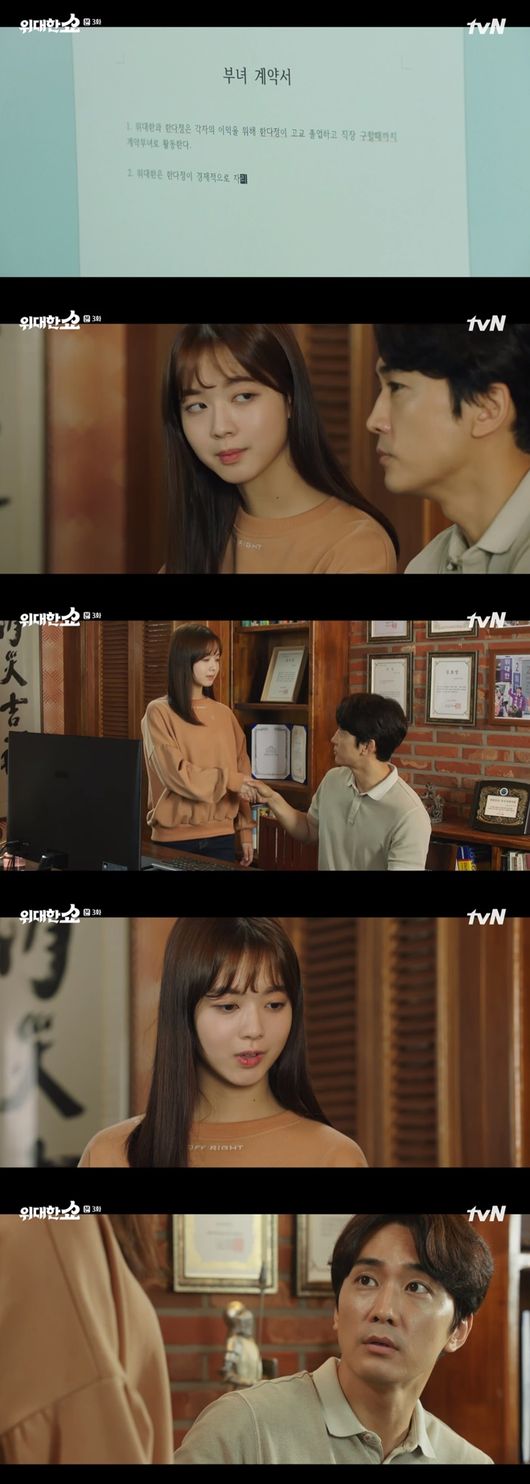 한다정은 위대한에게 "계약부녀 한 번 해보자"며 계약서를 쓰자고 제안했다. 위대한과 한다정은 한다정이 성인이 될 때까지 제한을 두고 계약서를 썼다. 위대한과 한다정은 번갈아가면서 서로 원하는 사항을 계약서에 작성했다.