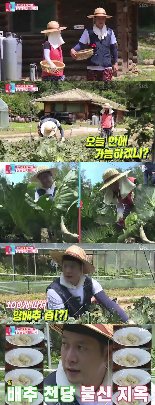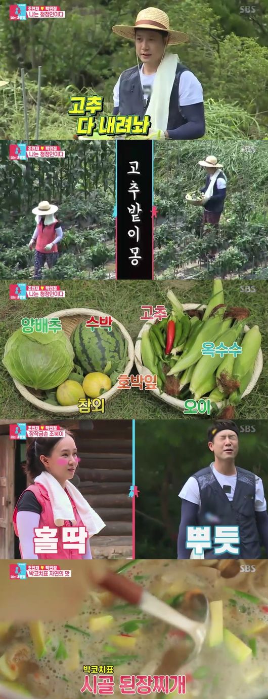 박민정은 "100개 따서 양배추즙을 내주겠다"고 말해 또 한번 폭소하게 했다. 양배추 수확을 끝내고 다른 밭으로 향했다. 고추를 따기 위해서였다. 우연히 수박까지 발견한 두 사람은 참외도 발견, 제대로 자리를 잡고 덩달아 주부부심이 폭발한 두 사람이 웃음을 안겼다.