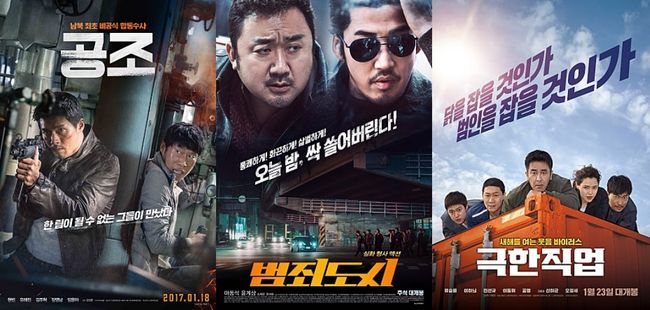 그 첫 번째 주자는 2017년 설에 개봉한 영화 '공조'로, 남북 최초의 공조 수사 과정을 그려낸 이 작품은 쉴 틈 없이 몰아치는 총격전과 카 체이싱 액션 등으로 관객들을 매료시키며 780만 명을 동원했다. 이어 그해 추석에는 실화 범죄 액션 영화 '범죄도시'가 뜨거운 사랑을 받았다. 대한민국을 공포로 몰아넣은 신흥범죄조직을 일망타진한 강력반 형사들의 조폭소탕작전을 그린 '범죄도시'는 악랄한 범죄조직과 괴물 같은 형사들의 치열한 추격전을 통해 형사 액션물 특유의 강렬한 쾌감을 선사, 청소년 관람불가임에도 불구하고 680만 명의 관객을 돌파하는 흥행 기록을 세웠다.