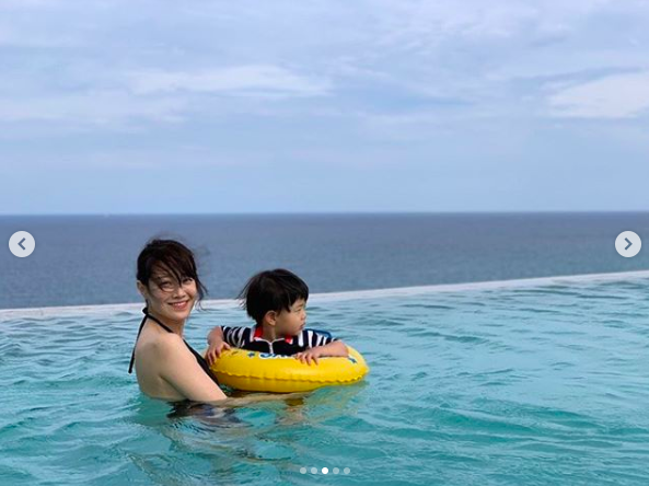 이어 “초가을 수영도 좋았다. 서서히 물 놀이에 익숙해진 아이가 기특해 발에 쥐날 때까지 놀아준 것, 이 역시 애미의 맘인가. 숙소에서 한발짝도 나가지 않았지만 시간은 충분히 잘 흐르는 거 보니 저도 꽤나 즐거운가 봐요”라고 아들을 향한 애틋한 마음을 표현했다.