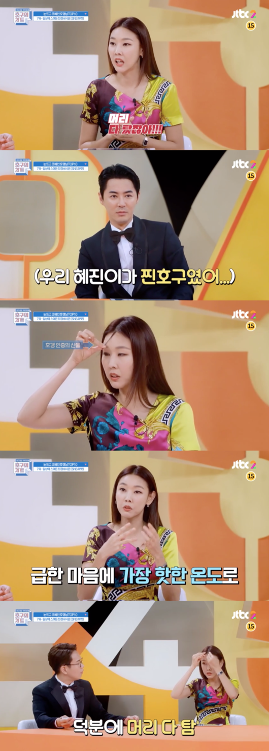 전진의 말에 흔들렸던 한혜진은 호갱이 됐던 에피소드를 공개했는데, “물결 웨이브를 만들어주는 고데기를 구매해서 사용했는데 머리가 다 탔다”며 타서 짧아진 머리를 보여줬다.