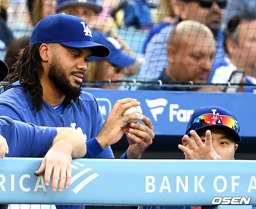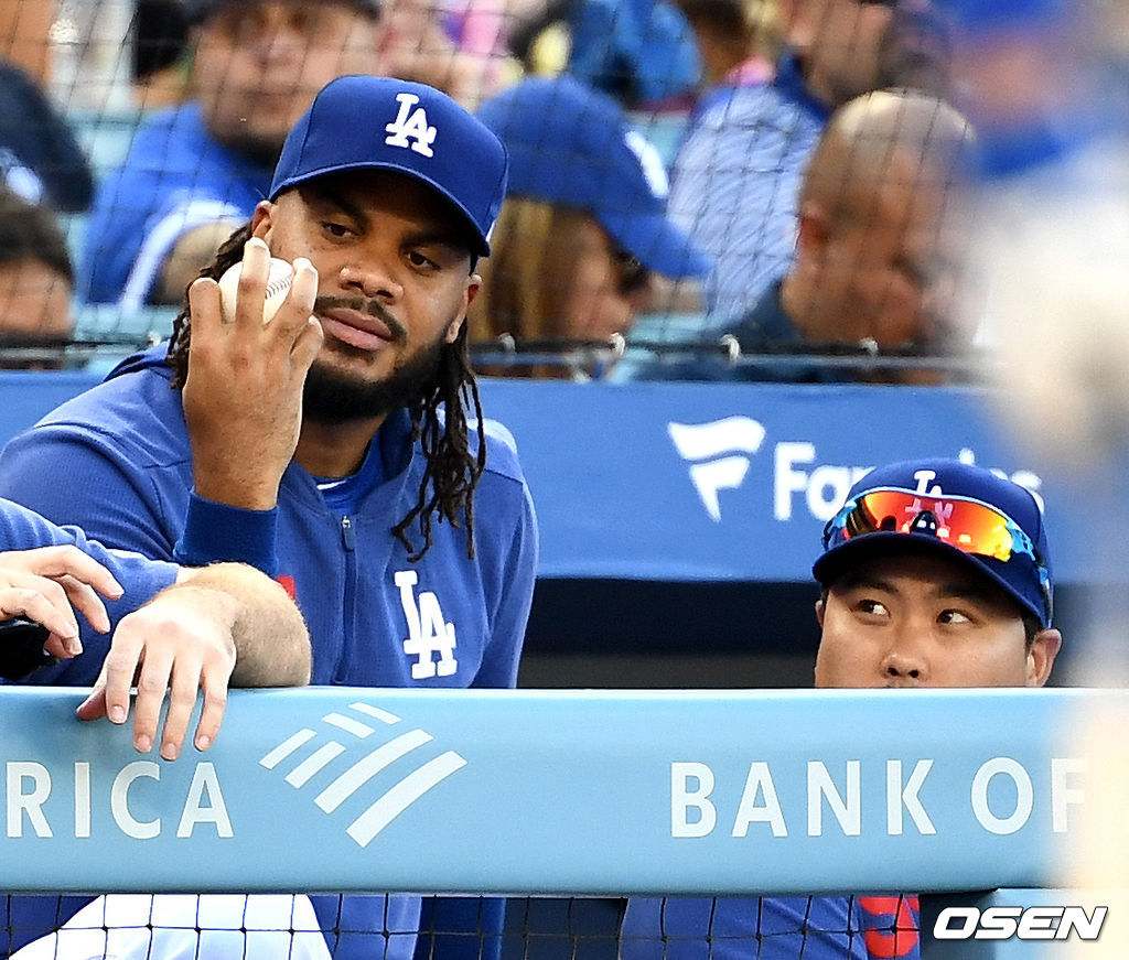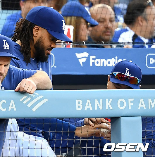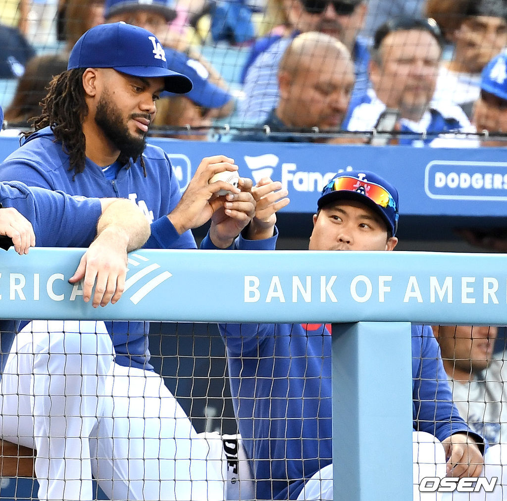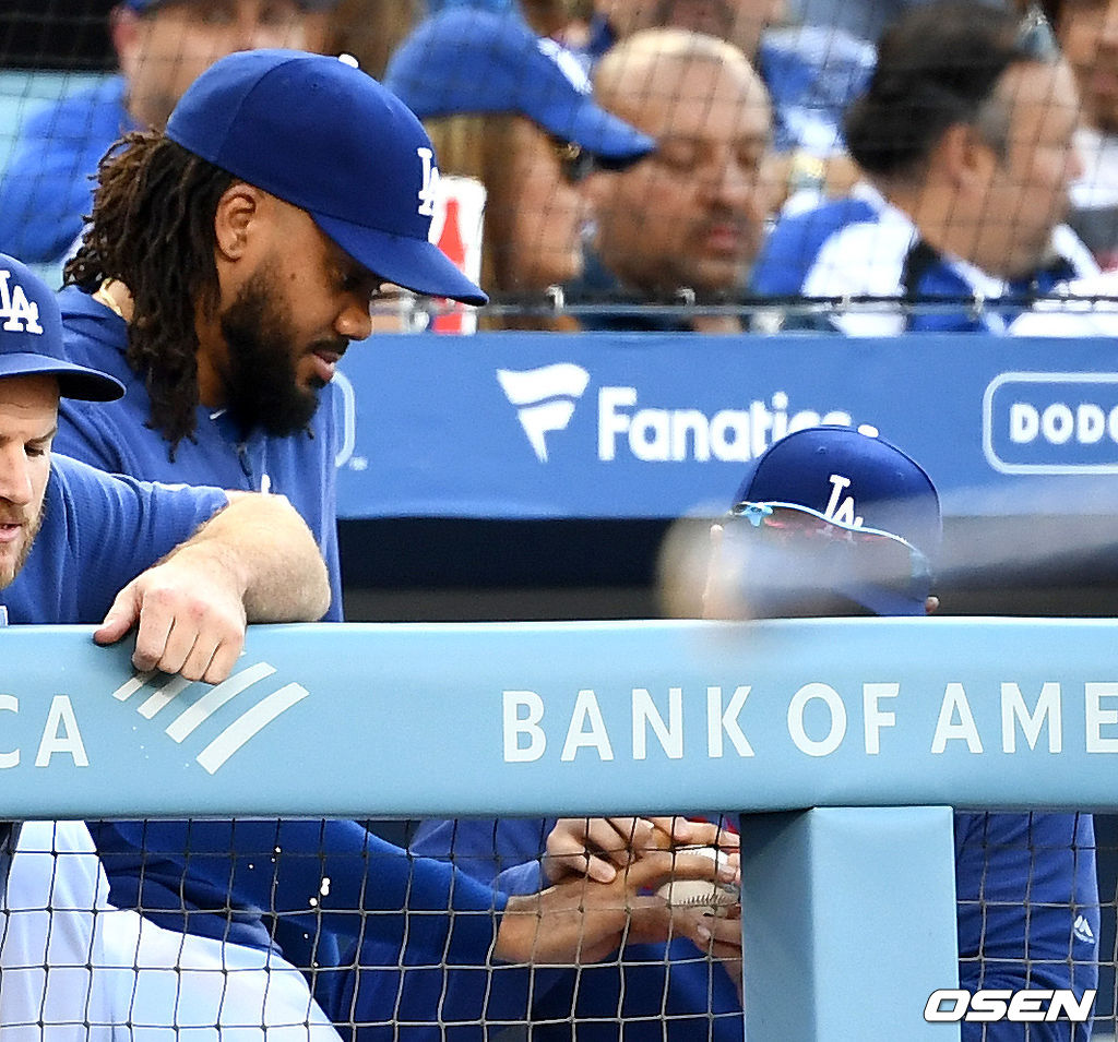 3일(이하 한국시간) 미국 캘리포니아주 로스앤젤레스 다저스 스타디움에서 열린 콜로라도 로키스와의 홈경기, 더그아웃에 나란히 앉은 류현진과 켄리 잰슨은 그라운드를 바라보며 이야기를 나눴다.