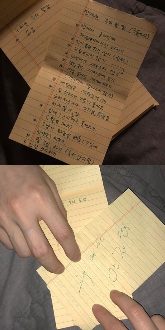 공개된 사진 속에는 '안재현 주의 할 점(3월까지), '구혜선 주의 할 점'이라는 글이 적힌 종이 두 장이 담겼다.