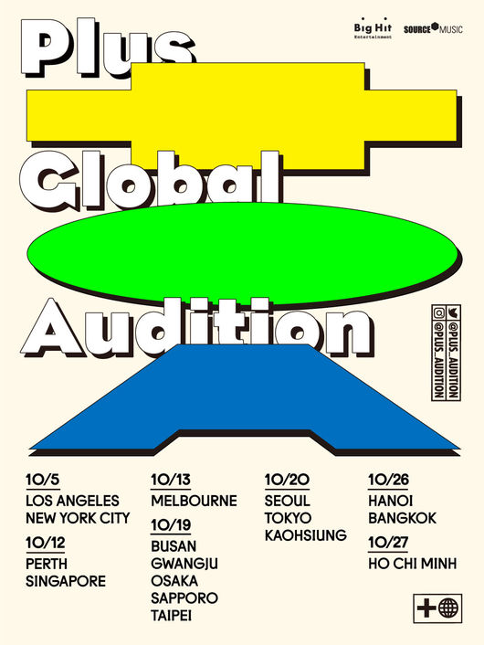 빅히트는 4일 “쏘스뮤직과 합작해 2021년 데뷔를 목표로 신인 걸그룹 멤버를 선발하는 ‘플러스 글로벌 오디션 (PLUS GLOBAL AUDITION)’을 개최한다”고 밝혔다.