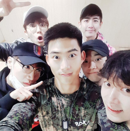 택연과 닉쿤이 공개한 사진에는 군 복무 중인 준호, 찬성, 준케이, 우영 모두 함께 모인 완전체가 함께 해서 팬들에게 더욱 반가움을 주고 있다.