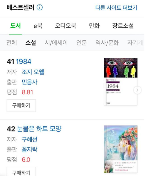 구혜선은 4일 자신의 SNS에 "'눈물은 하트 모양' 베스트셀러 42위로 상승. e북은 1위 입니다. 감사드려요"란 글을 게재했다. '눈물은 하트 모양'은 구혜선이 최근 쓴 소설이다.