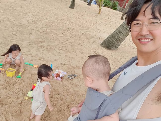공개된 사진 속 윤상현은 나온 양, 나겸 양, 희성 군과 함께 바닷가를 찾았다. 희성 군은 윤상현의 품에 안겨 있고, 나온 양은 모래 놀이에 집중하고 있는 모습이다.