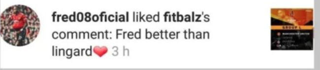 영국 '미러'는 4일(한국시간) "맨유의 프레드는 한 팬이 인스타그램서 '최소한 프레드가 제시 린가드보단 잘한다'라고 올린 글에 좋아요를 누르며 불만을 나타냈다"라고 보도했다.