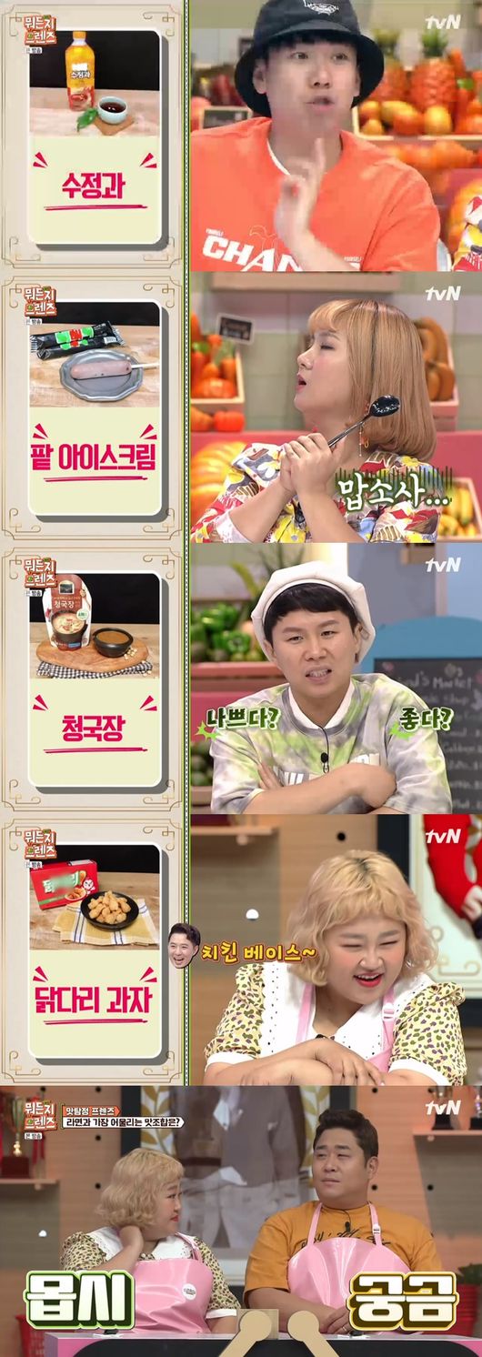 이날 멤버들은 양세찬이 수정과, 박나래는 팥 아이스크림, 양세형은 청국장, 황제성은 커피 믹스, 홍윤화는 닭다리 과자, 문세윤은 낙지젓이 당첨됐다.