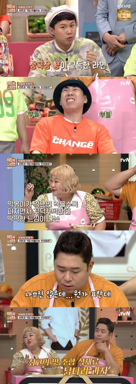 4일에 방송된 tvN '뭐든지 프렌즈'에서는 멤버들이 새로운 조합의 라면을 찾기 위해 다양한 식재료로 만든 라면을 먹었다.