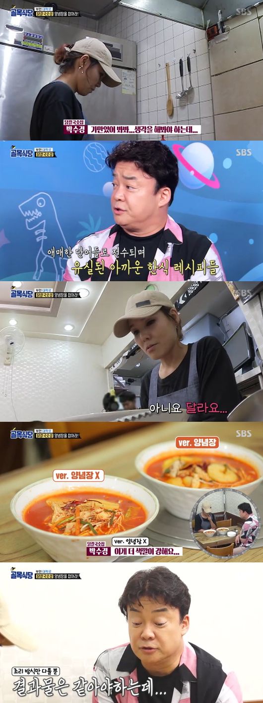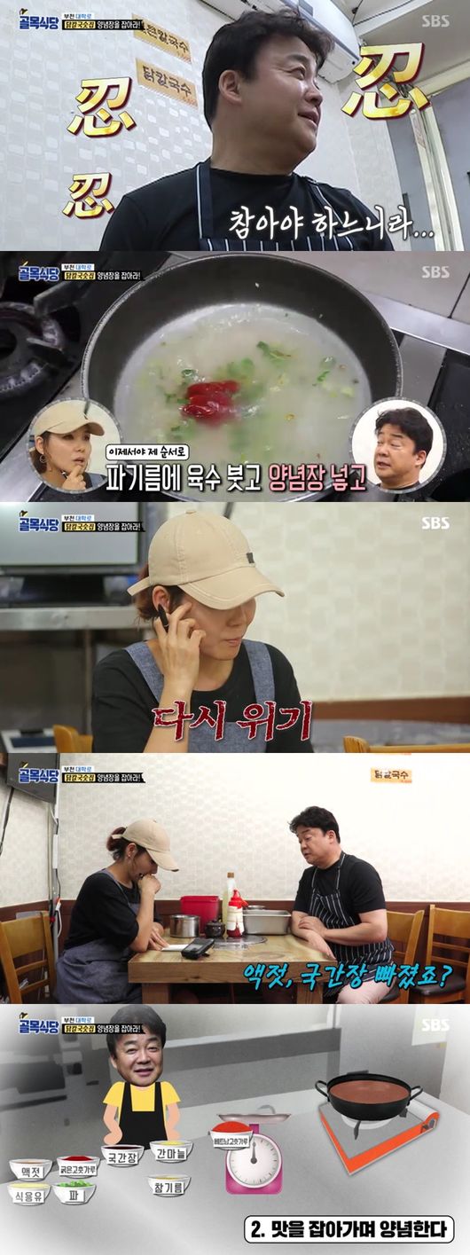 백종원이 지켜보는 가운데, 사장은 요리를 마쳤으나 1인분 레시피임에도 국물이 남았다. 백종원이 이유를 묻자 사장은 당황하며 이유를 찾지 못했다. 백종원은 "다 끓인 후 육수가 남는 건 1인분 레시피가 잘못된 것"이라며 이를 지적했다.