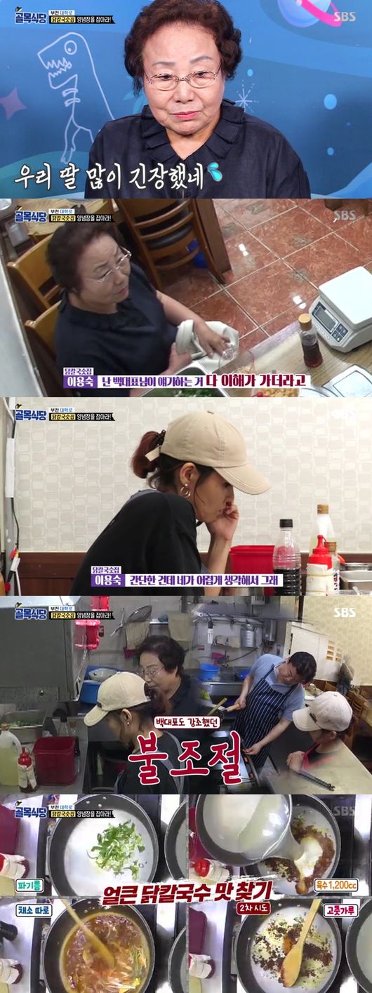 이때, 닭칼국수 사장의 母이자 창업주가 등장했다. 母역시 딸이 이해하지 못하는 모습을 답답해했다. 사장과 달리 단번에 백종원의 말을 이해하며 25년 내공을 보였다. 결국 母가 불안한 마음에 식당을 찾아갔다. 母는 "간단한 건데 어렵게 생각해서 그렇다, 네가 경험이 부족해서 그렇다"며 안타까워했다. 그러면서 주방을 정리하기 시작, 깔끔하게 정리했다. 이어 백종원과 똑같이 설명하며 딸과 함께 맛 찾기 연구에 돌입했다.