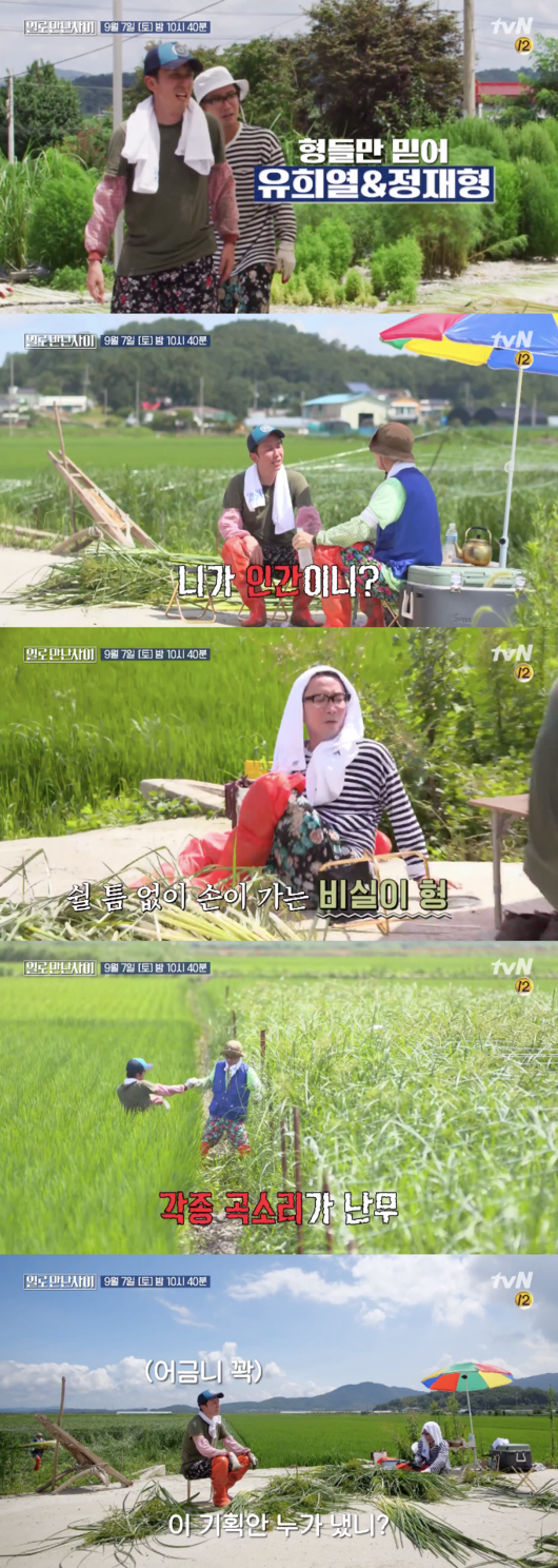 차승원도 마찬가지였다. 유재석과 차승원은 전북 무안의 고구마밭을 찾아가 일손을 도왔다. 차승원은 일을 시작하기 전에 유재석에게 “프로그램 제목 앞에 '힘든' 일로 만난 사이라고 꼭 붙여야 할 것 같다”고 말해 고된 노동을 예고했다.