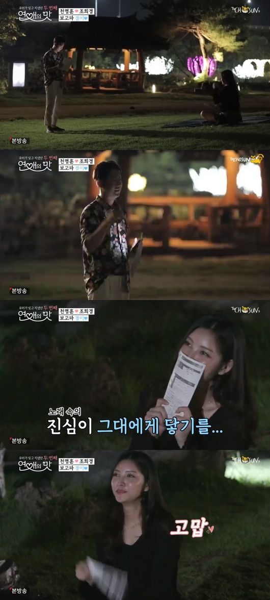 지난 5일 방송된 TV조선 '연애의 맛2'에서는 오직 조희경을 위한 스페셜 이벤트를 준비한 천명훈의 모습이 그려졌다.