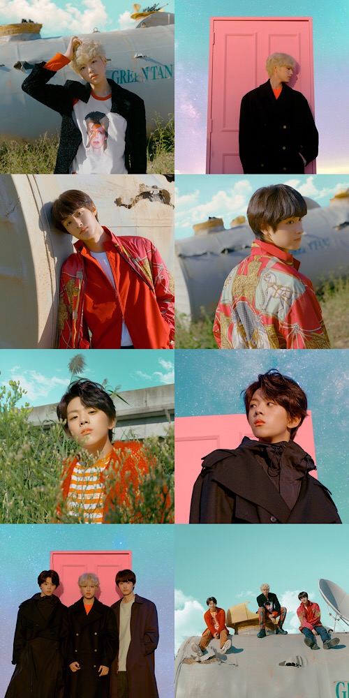 반면 핑크빛 문 앞에 선 틴틴은 상상과 현실을 넘나드는 듯한 오묘한 매력을 풍겼다. 특히 스카이 블루 배경에 수놓아진 별들이 판타지 감성을 극대화시켰다.