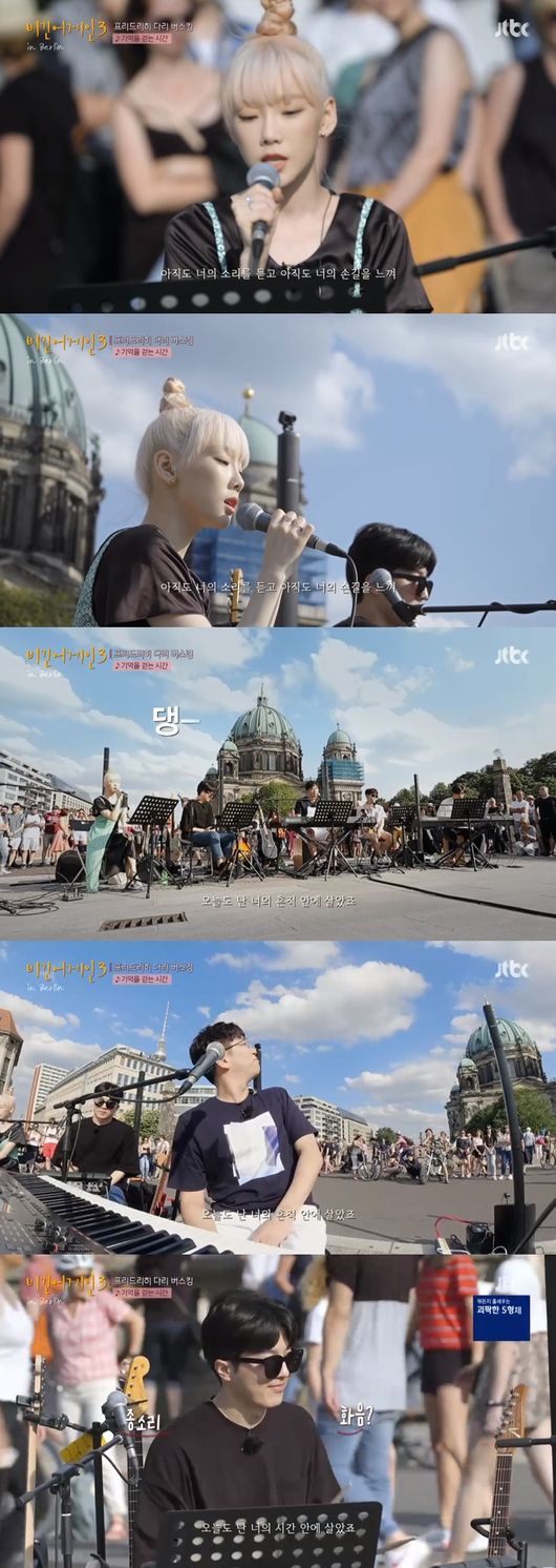 이날 태연은 넬의 '기억을 걷는 시간'을 선곡했다. 태연은 "내 노래가 아니라 커버곡이다. 버스킹에 대한 부담과 원곡자를 생각하며 잘 해야하는 또 다른 부담이 있는 곡이다"라고 말했다. 그때 멀리서 종소리가 들렸다. 예상치 못한 종소리에 태연은 노래를 멈춰야했다.