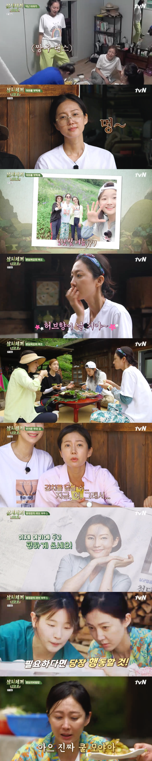 점심 메뉴는 꽁보리비빔밥이었다. 염정아는 업그레이드 된 김치콩나물국을 끓였고 또 3일치 농축 육수도 킵했다. 이번에도 역시나 대만족. 윤세아는 국물 맛을 보더니 "눈물 날 정도"라고 칭찬했고 박소담은 그릇째 드링킹했다. 동생들이 맛있게 먹는 걸 보며 염정아는 흐뭇한 엄마 미소를 지었다.
