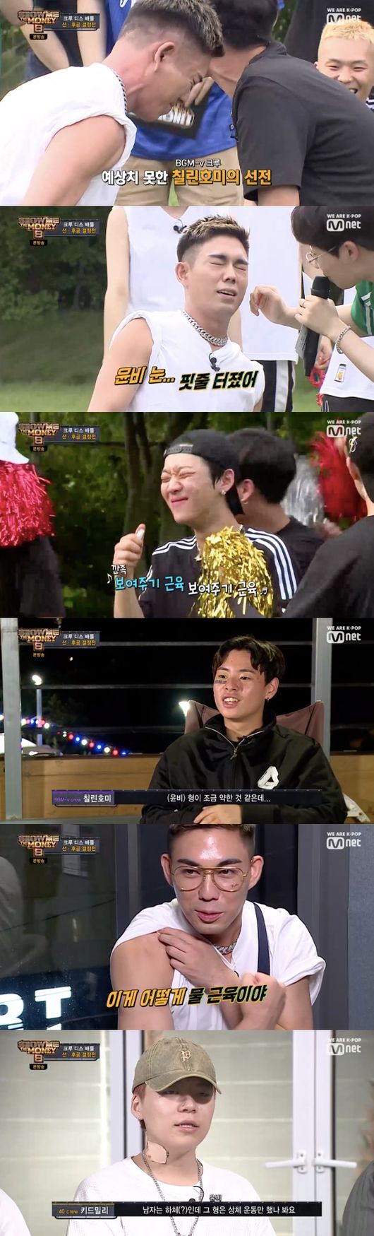 또 윤비는 랩을 끝내고 상의를 완전히 벗었다. 그의 근육질 몸매가 고스란히 드러났다. 그는 위협적으로 영비에게 다가가 주먹을 내지르는 시늉을 하기도 했다. 누가 봐도 윤비가 압살한 무대였다.