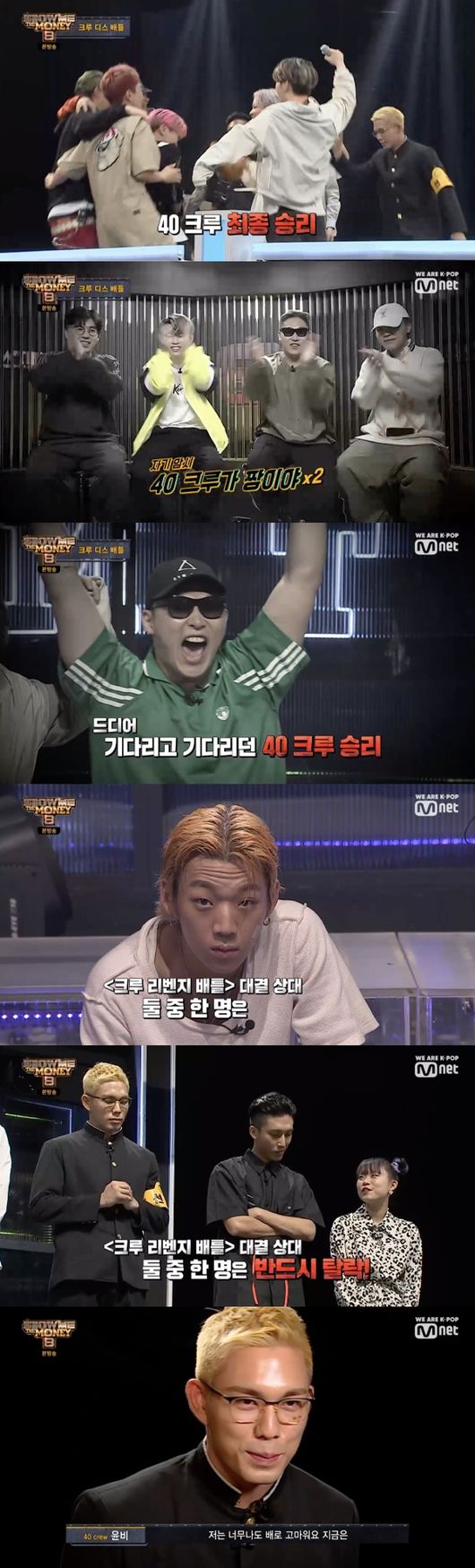 지난 6일 방송된 Mnet 예능 프로그램 '쇼미더머니8'에서는 40 크루와 BGM-v 크루가 크루 디스 배틀을 펼친 가운데, 40 크루가 우승하는 모습이 그려졌다.